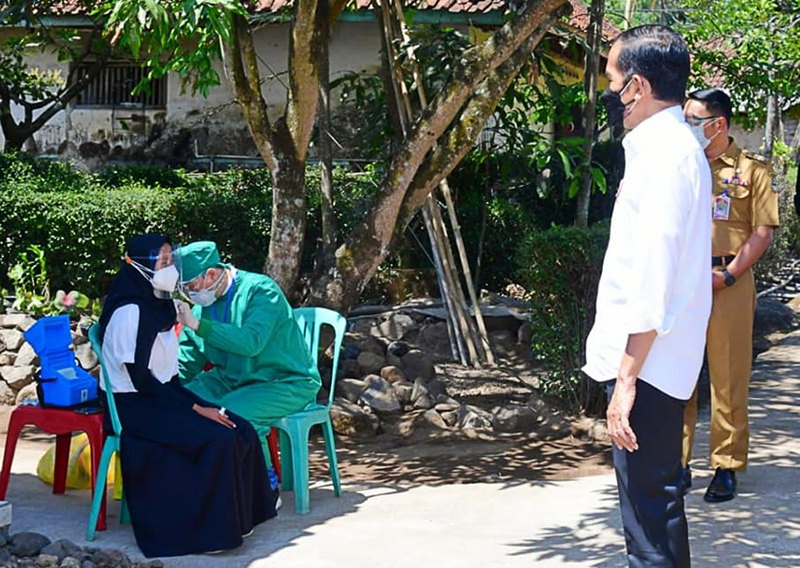 “Saya sudah perintahkan agar kegiatan vaksinasi bagi pelajar dan santri ini dilakukan secara besar-besaran, terutama di daerah-daerah yang tingkat penyebaran Covid-nya tinggi,” kata Presiden, saat meninjau langsung program vaksinasi Covid-19 di SMAN 1 Beber, Kabupaten Cirebon, Jawa Barat, Selasa, (31/8).