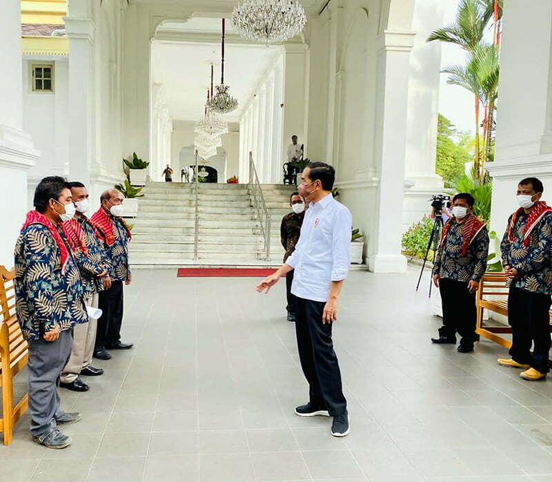 Presiden Jokowi Berbincang Bersama Perwakilan Warga Desa Liang Melas Datas di Teras Istana Negara Jakarta