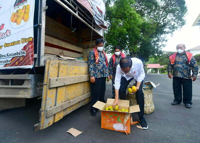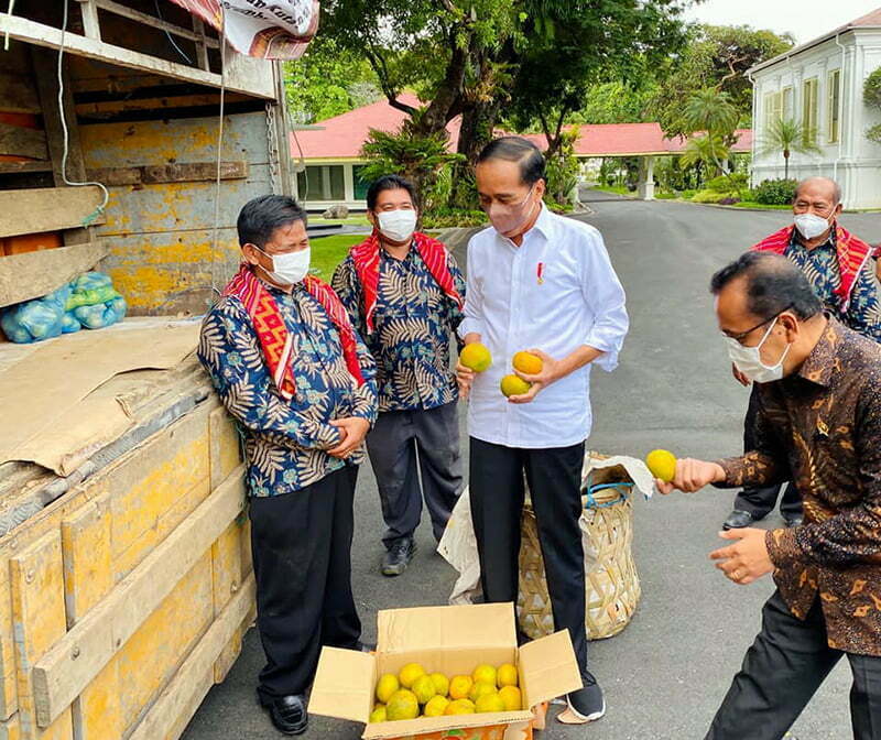 Presiden Jokowi Melihat Langsung Truk Berisi Buah Jeruk yang Dibawa Perwakilan Warga Desa Liang Melas Datas