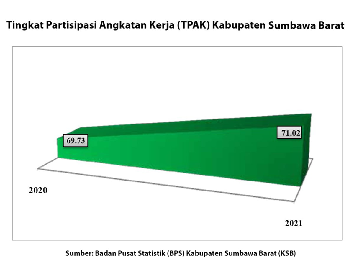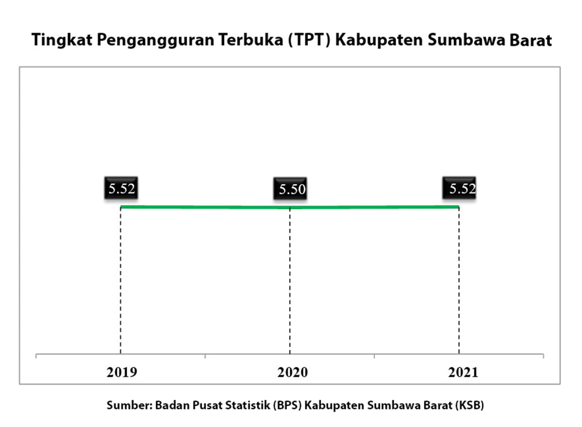 “Pada tahun 2019-2021, TPT Kabupaten Sumbawa Barat berada pada kisaran angka 5 persen. Namun, pada tahun 2020 TPT Kabupaten Sumbawa Barat sedikit menurun menjadi 5,50 persen. Walaupun 2020 pandemi Covid-19 melanda, tapi pengangguran mampu turun tipis. Banyaknya pekerja di sektor pertanian tidak terlalu terpengaruh oleh adanya pandemi. Sementara itu, pada tahun 2021, TPT Kabupaten Sumbawa Barat sedikit mengalami peningkatan menjadi 5,52 persen,” beber Yassinta Ben Katarti Latiffa Dinar, Kepala Badan Pusat Statistik (BPS) Kabupaten Sumbawa Barat (KSB), dalam publikasi Indikator Kesejahteraan Rakyat Kabupaten Sumbawa Barat 2022.